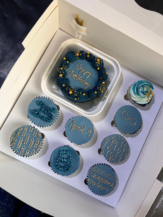 Artistic Blue Bento Cake + 8 cupcake Hamper