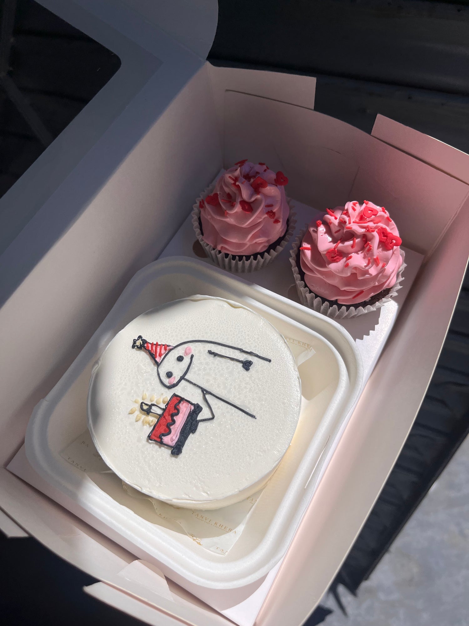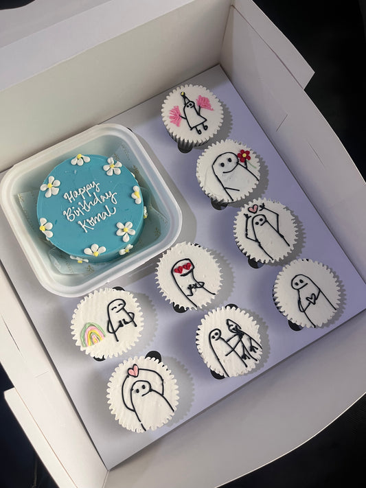 Birthday Doodle Bento Cake + 8 Cupcakes Hamper