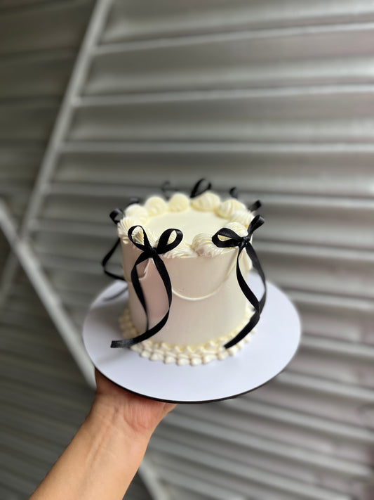 White Cake With Black Bow Victorian Cake