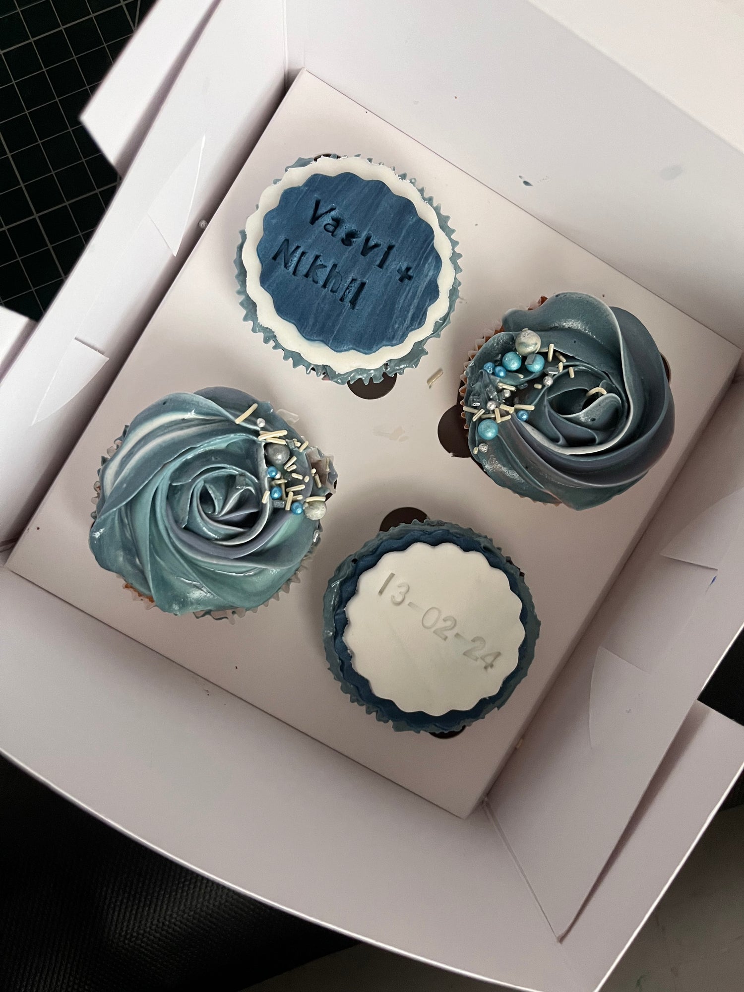 Artistic Blue Bento Cake + 8 cupcake Hamper
