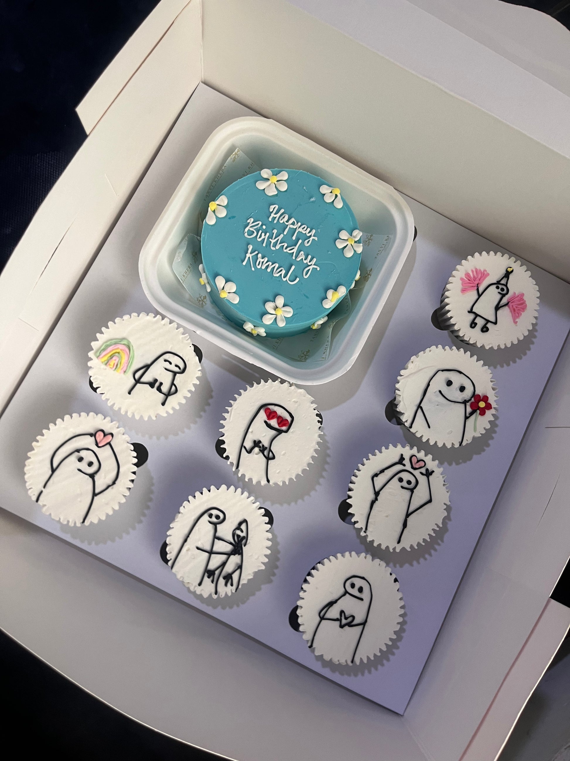 Birthday Doodle Bento Cake + 8 Cupcakes Hamper